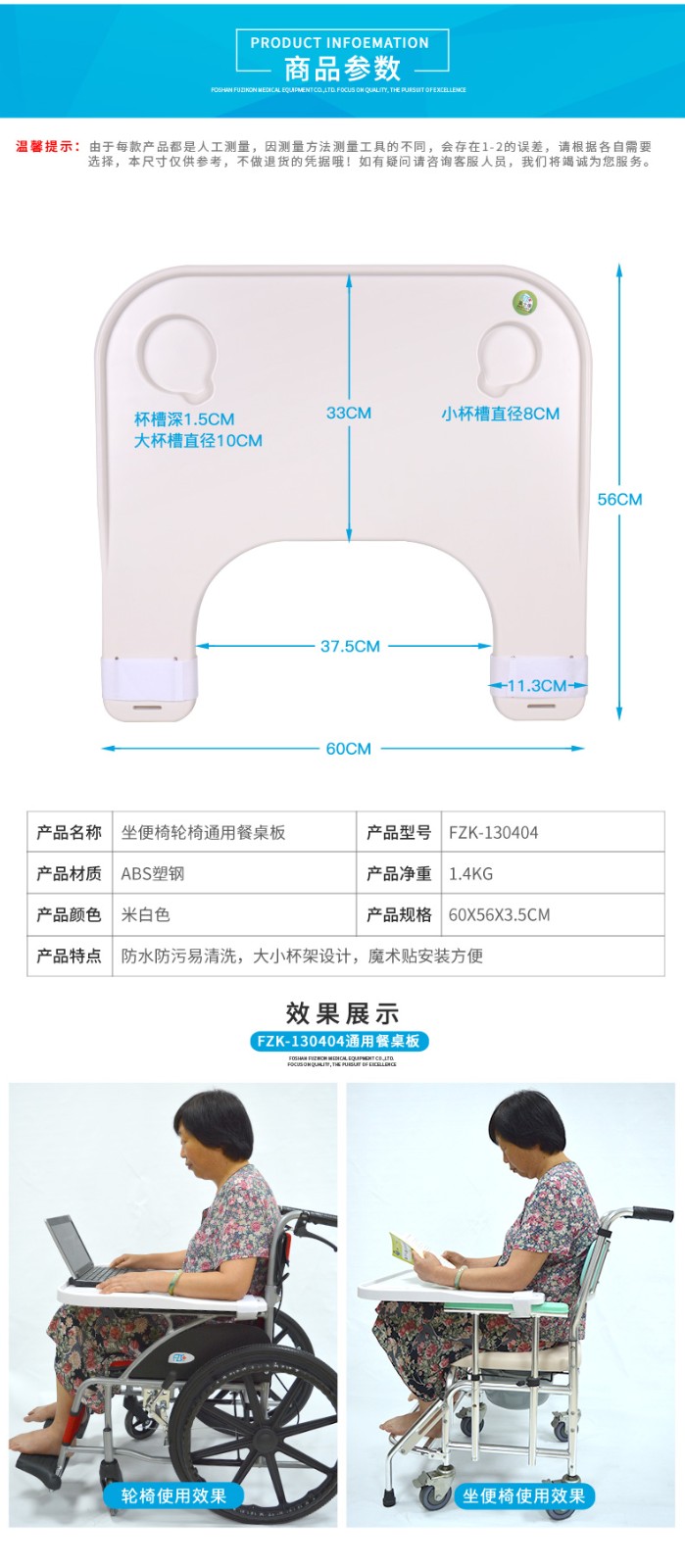 FZK-130404 輪椅坐便椅餐桌板
